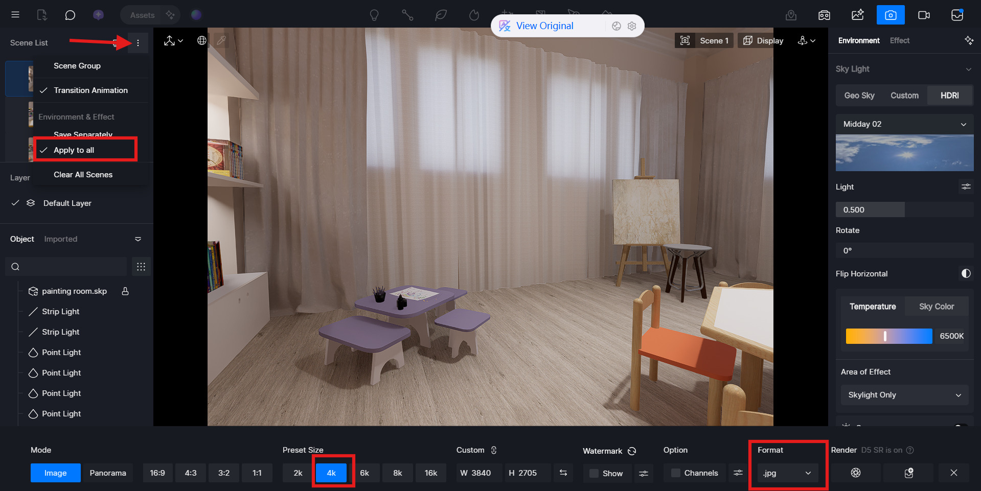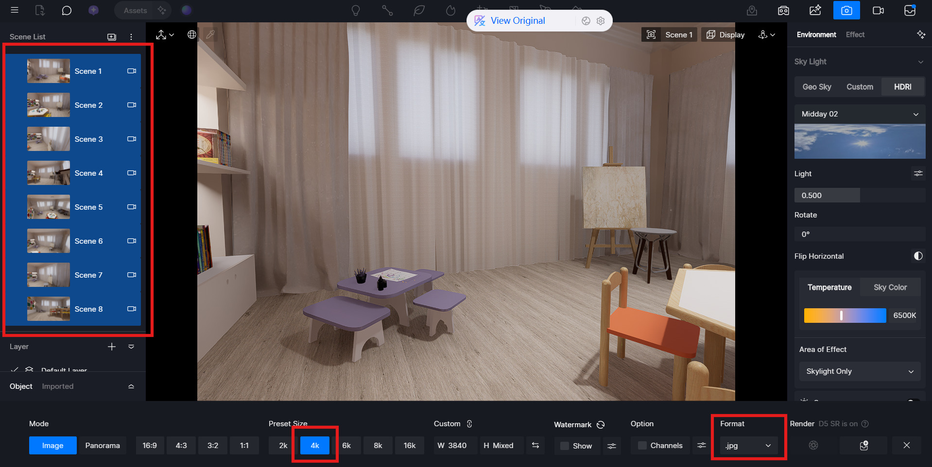 Whenever I create a new scene in D5 Render, all the image settings automatically reset to default — for example, the format goes back to PNG. I usually prefer JPG format and 4K resolution, but currently, I have to manually change these settings for every single scene.