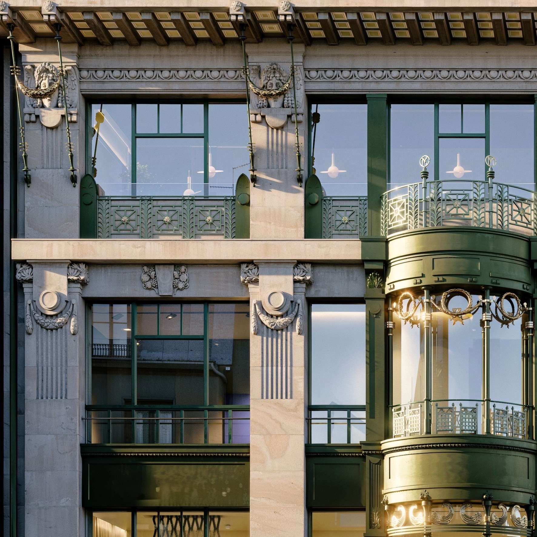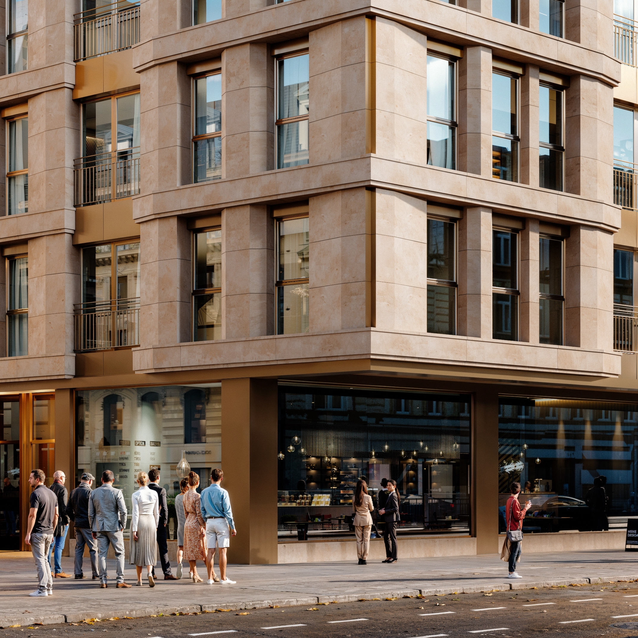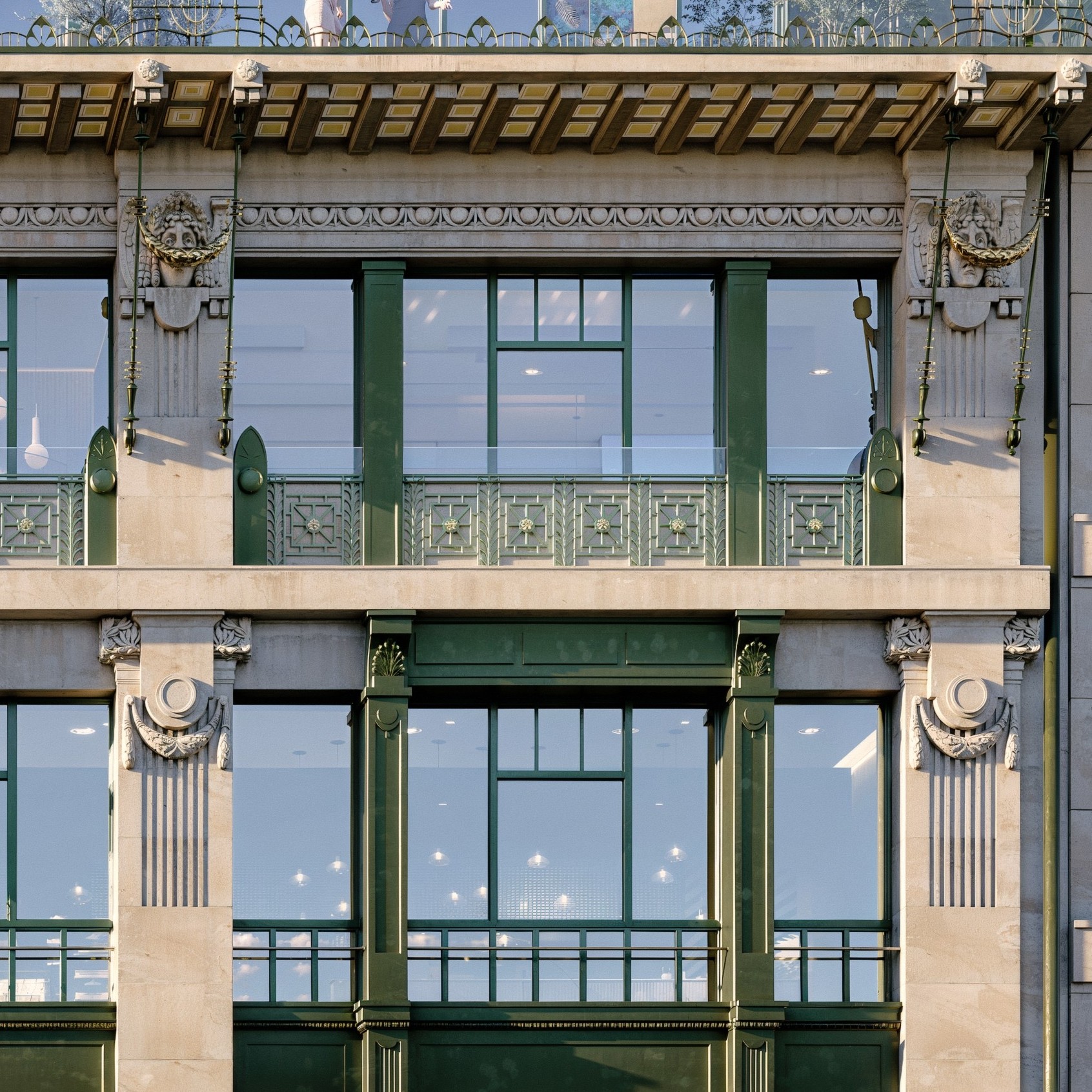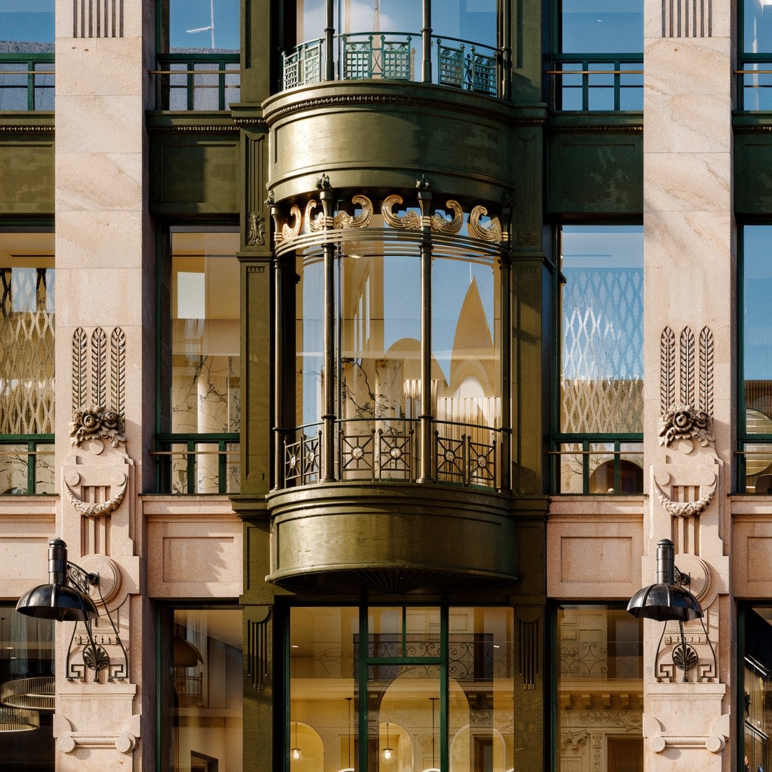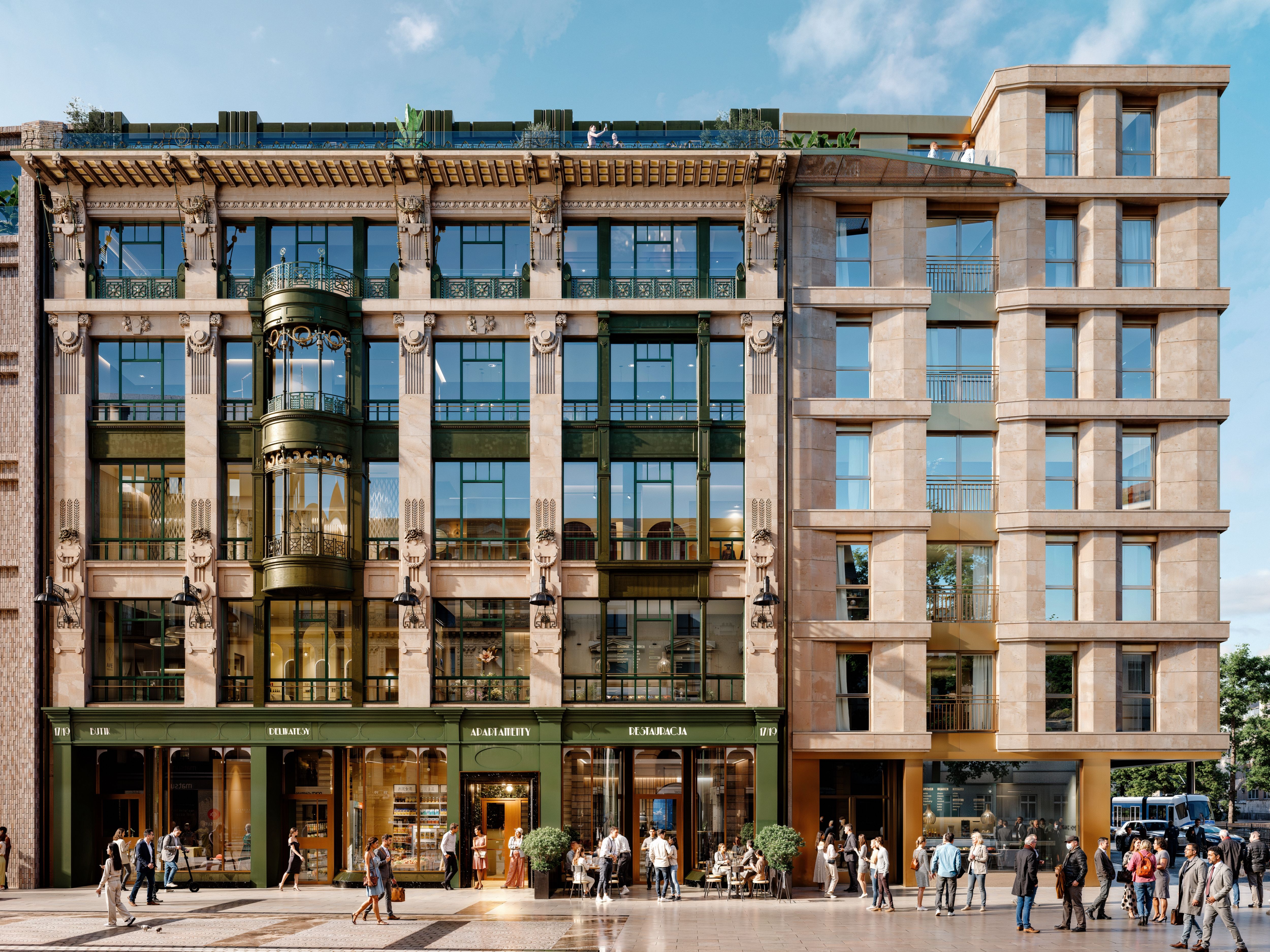 Renovation of the former Art Nouveau Modehaus and a new building filling the gap between existing buildings.