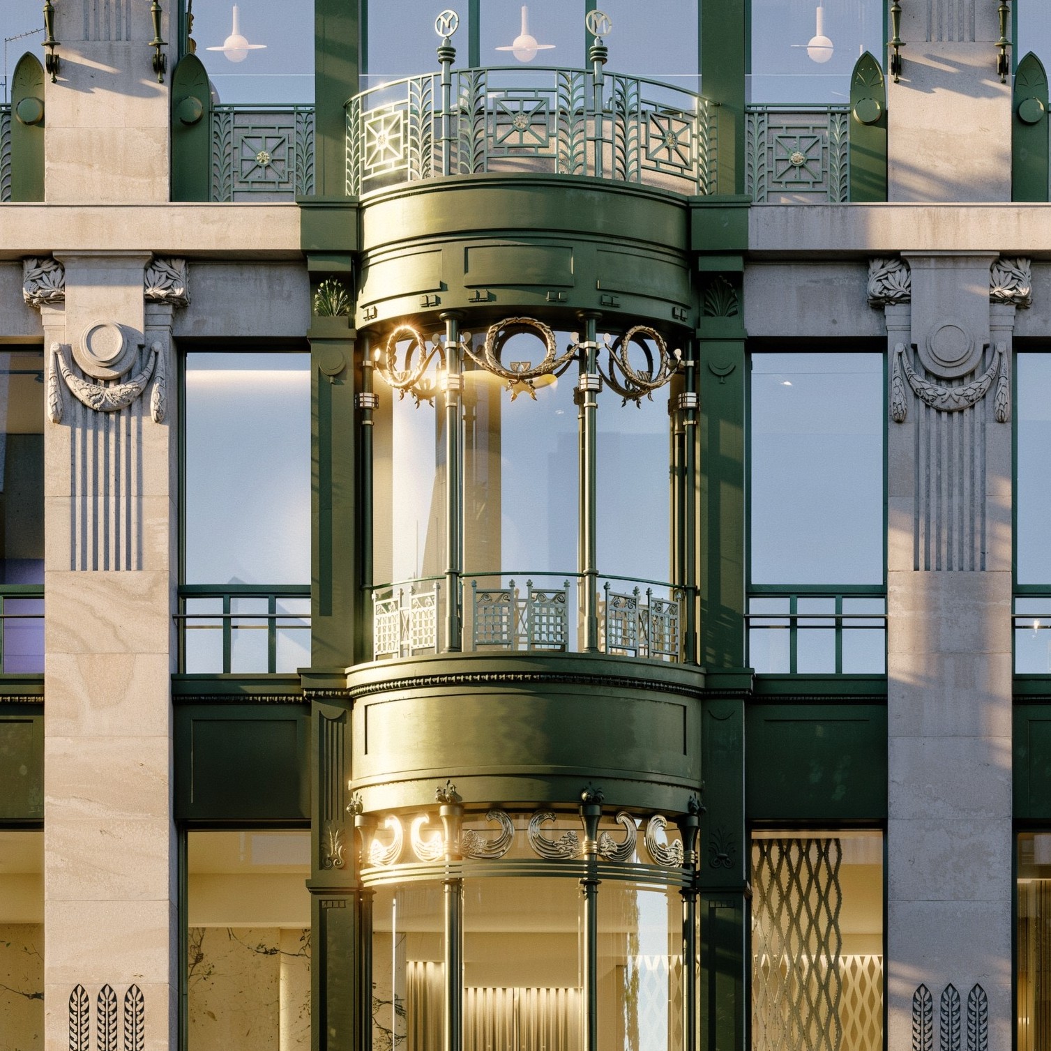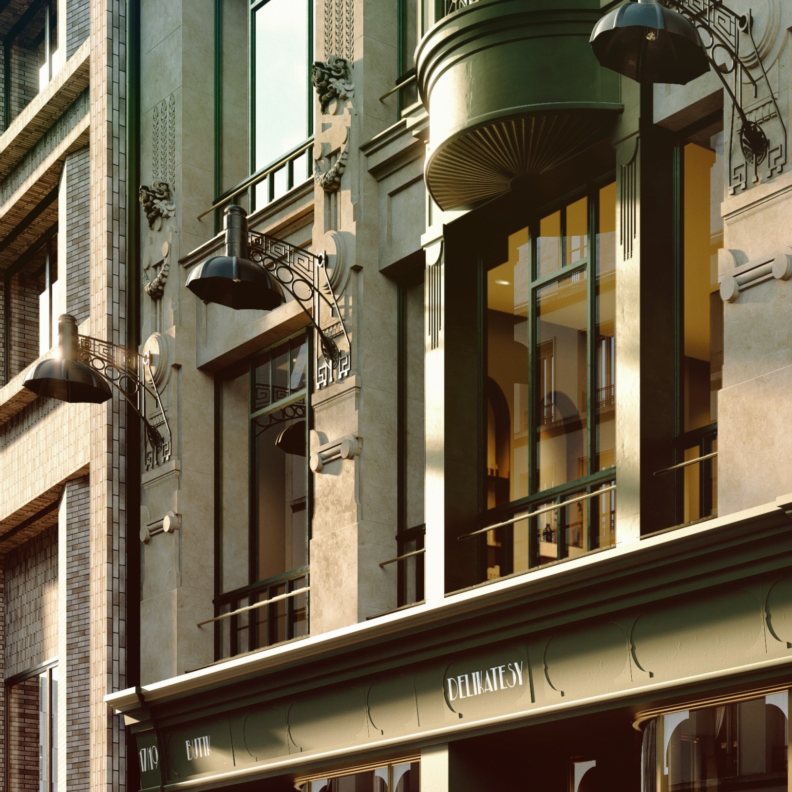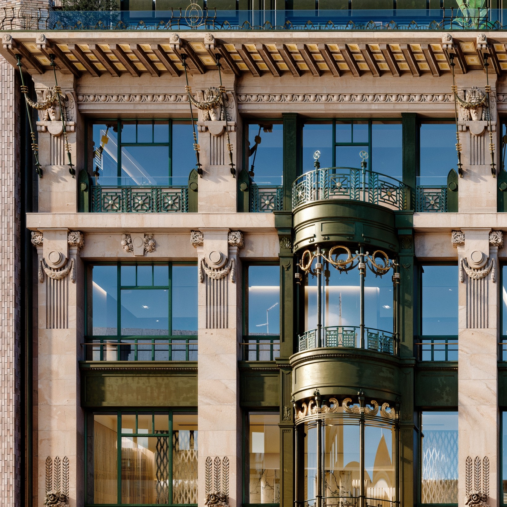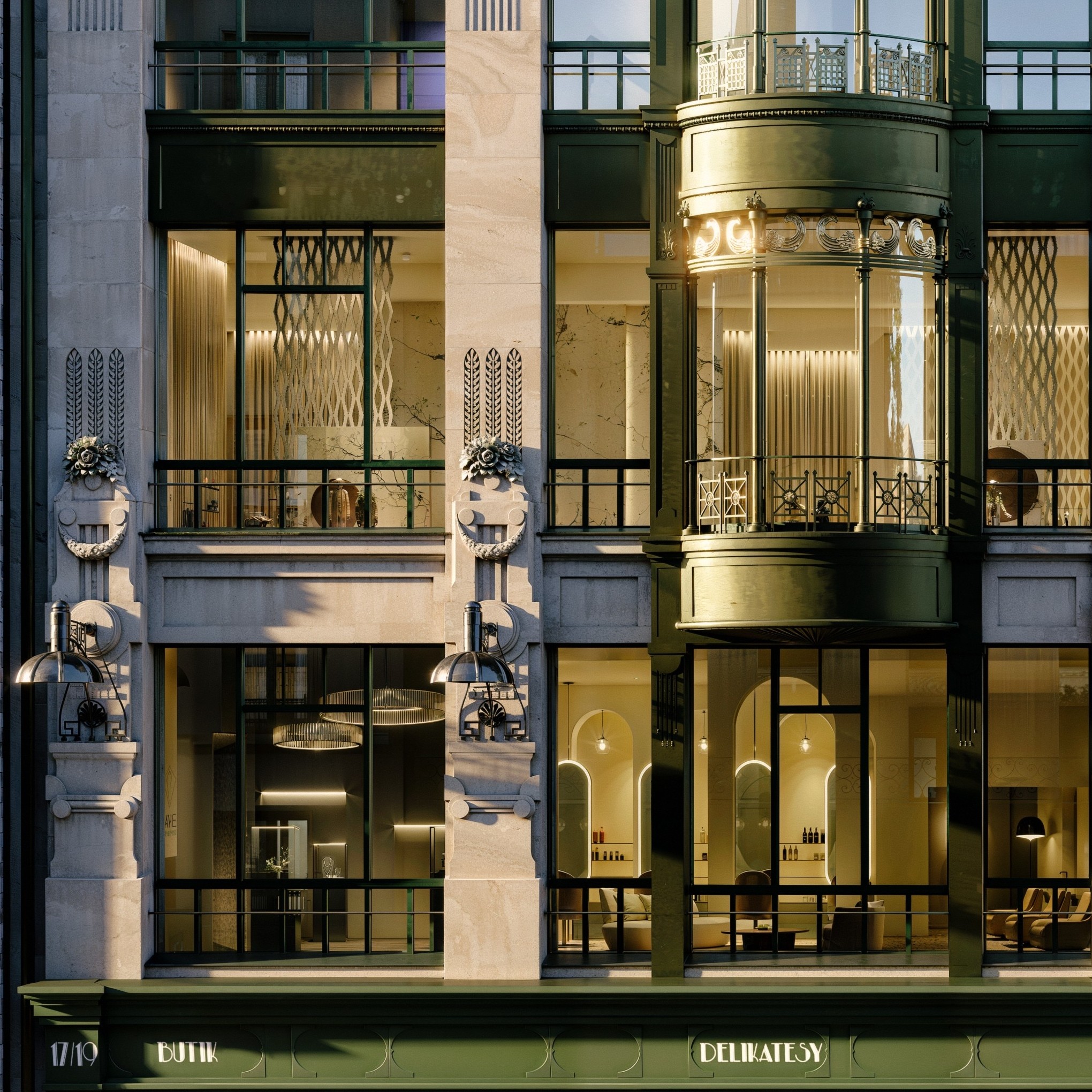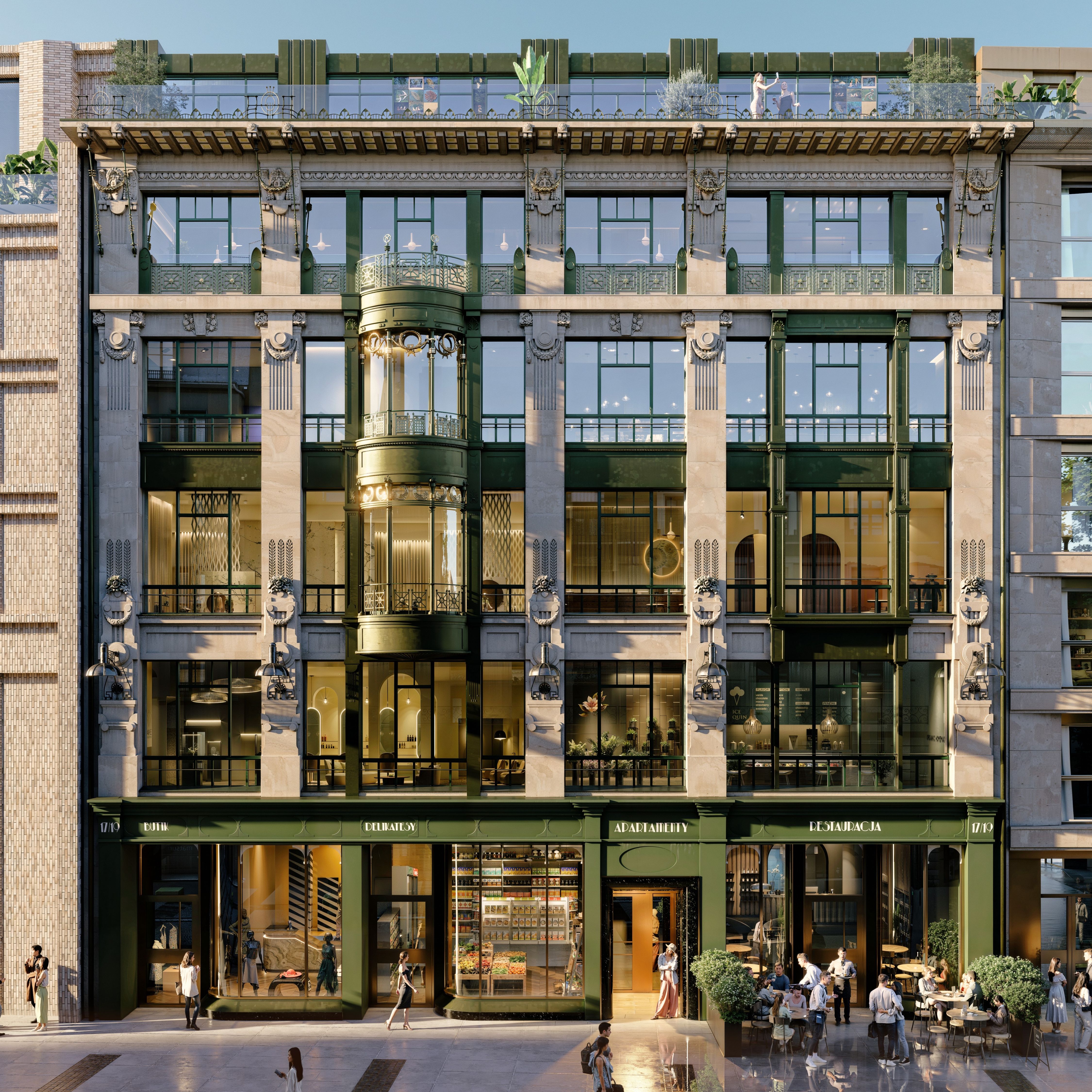 Renovation of the former Art Nouveau Modehaus and a new building filling the gap between existing buildings.