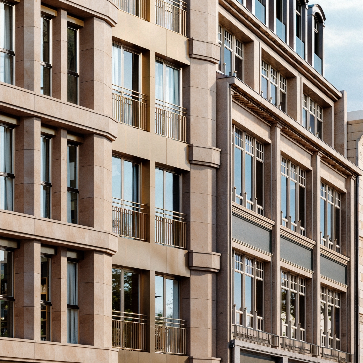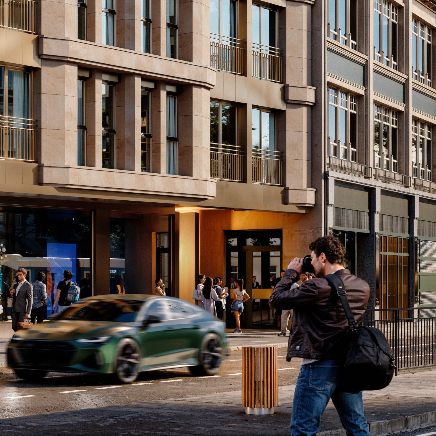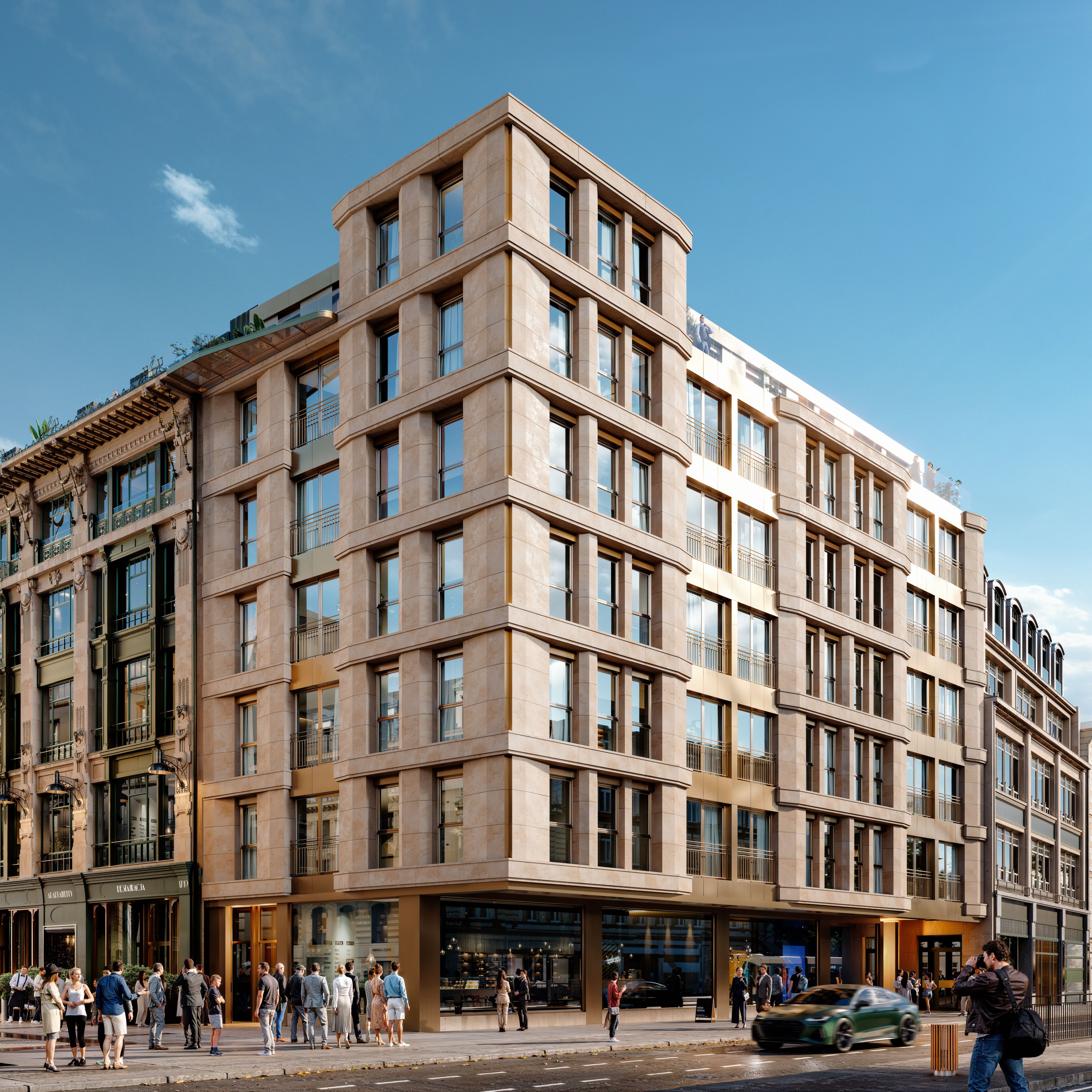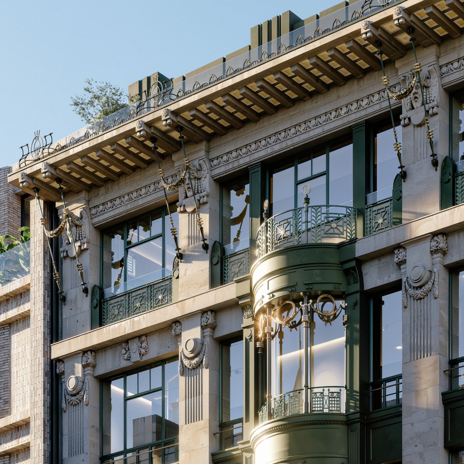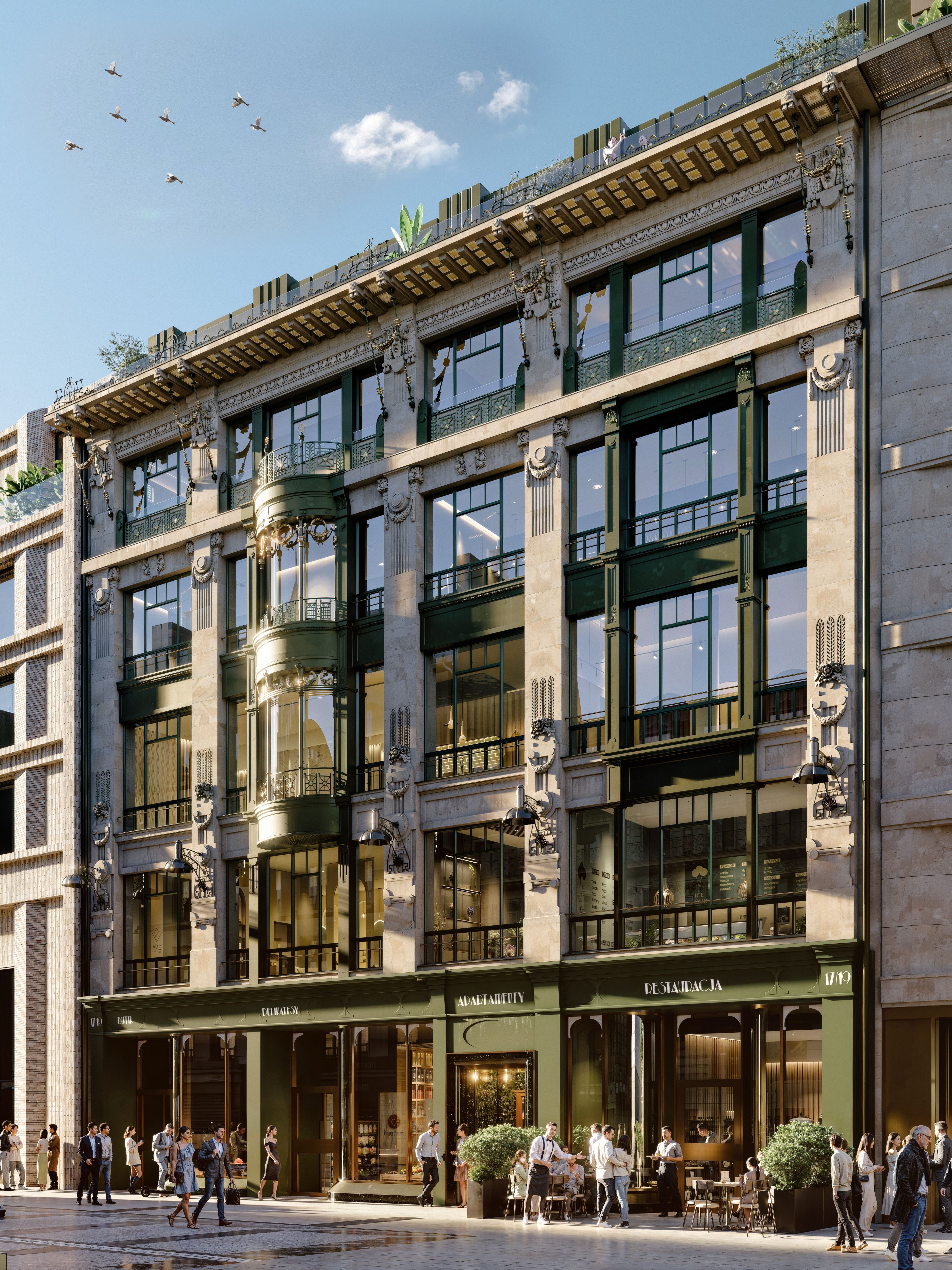 Renovation of the former Art Nouveau Modehaus and a new building filling the gap between existing buildings.
