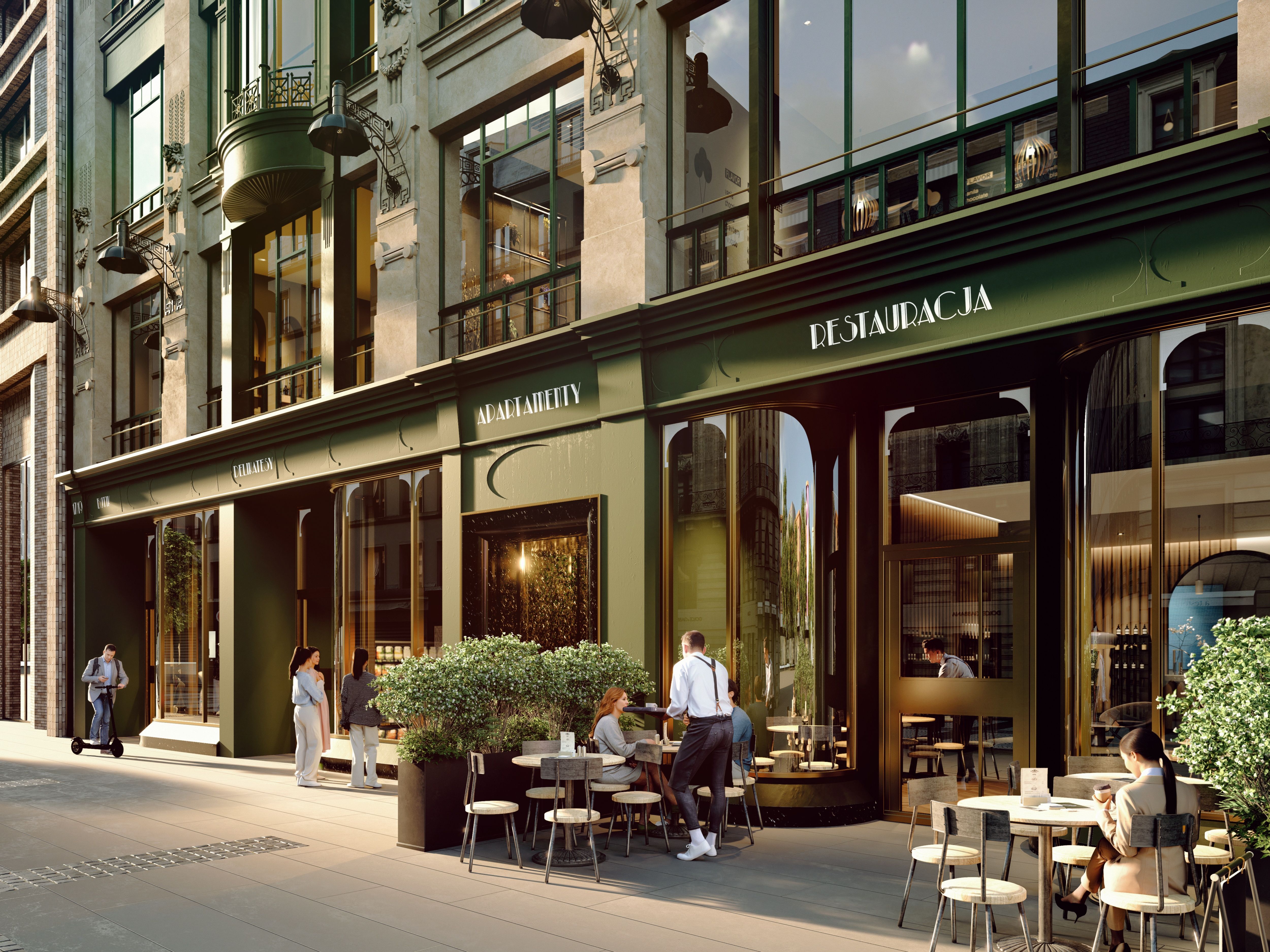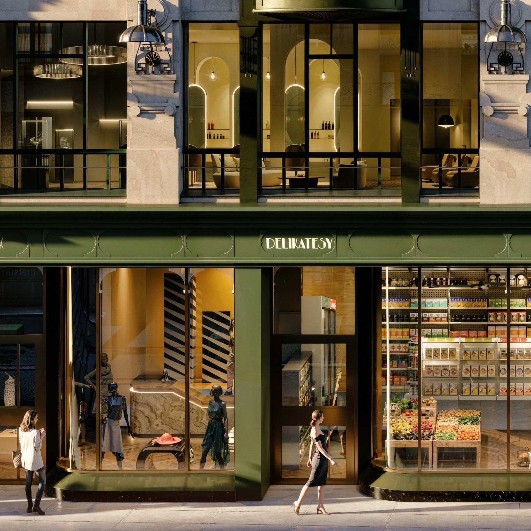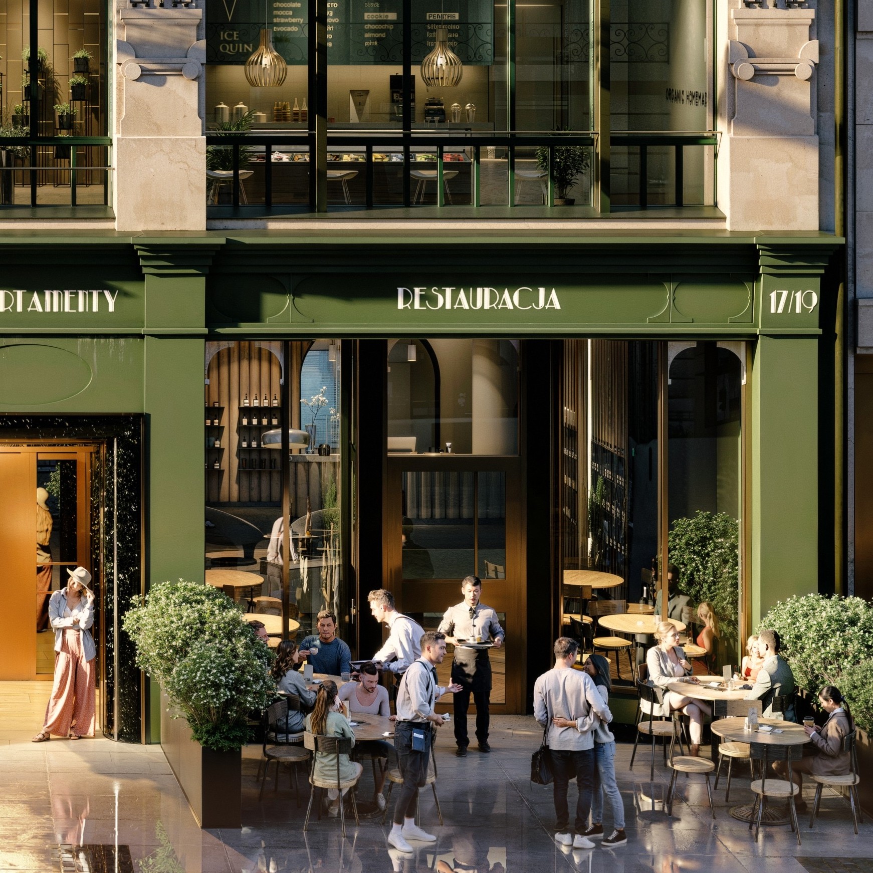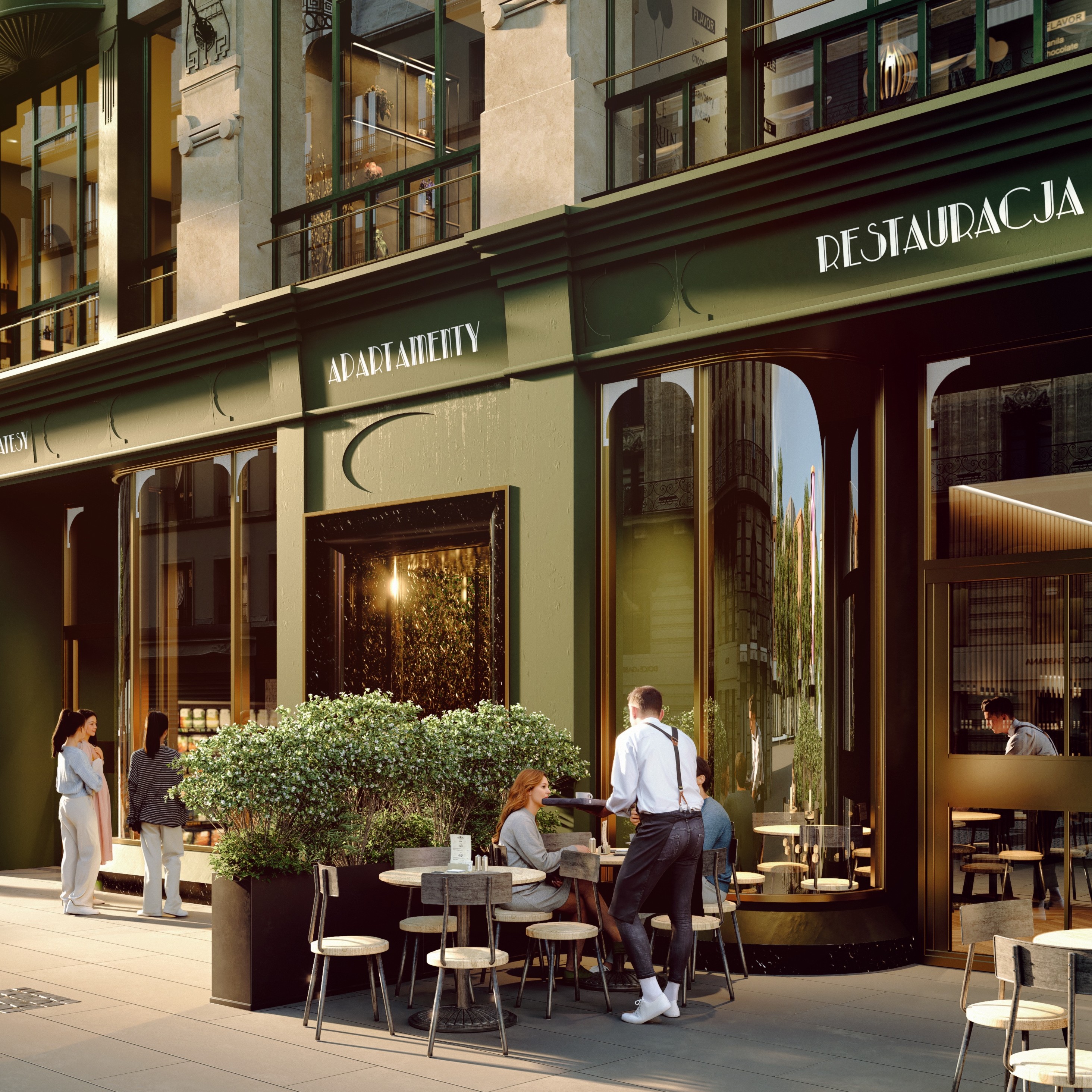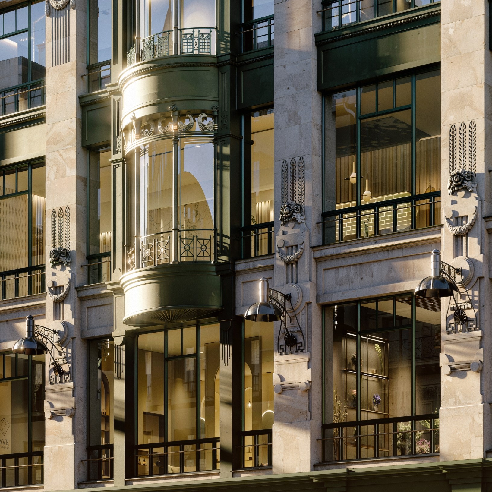 Renovation of the former Art Nouveau Modehaus and a new building filling the gap between existing buildings.