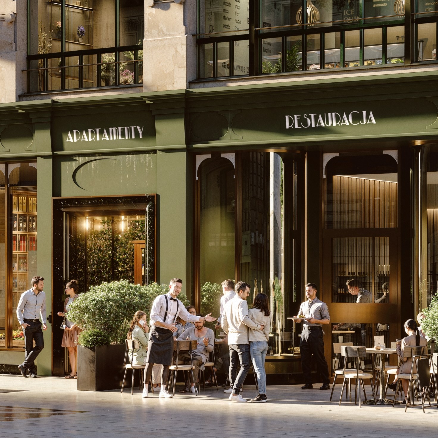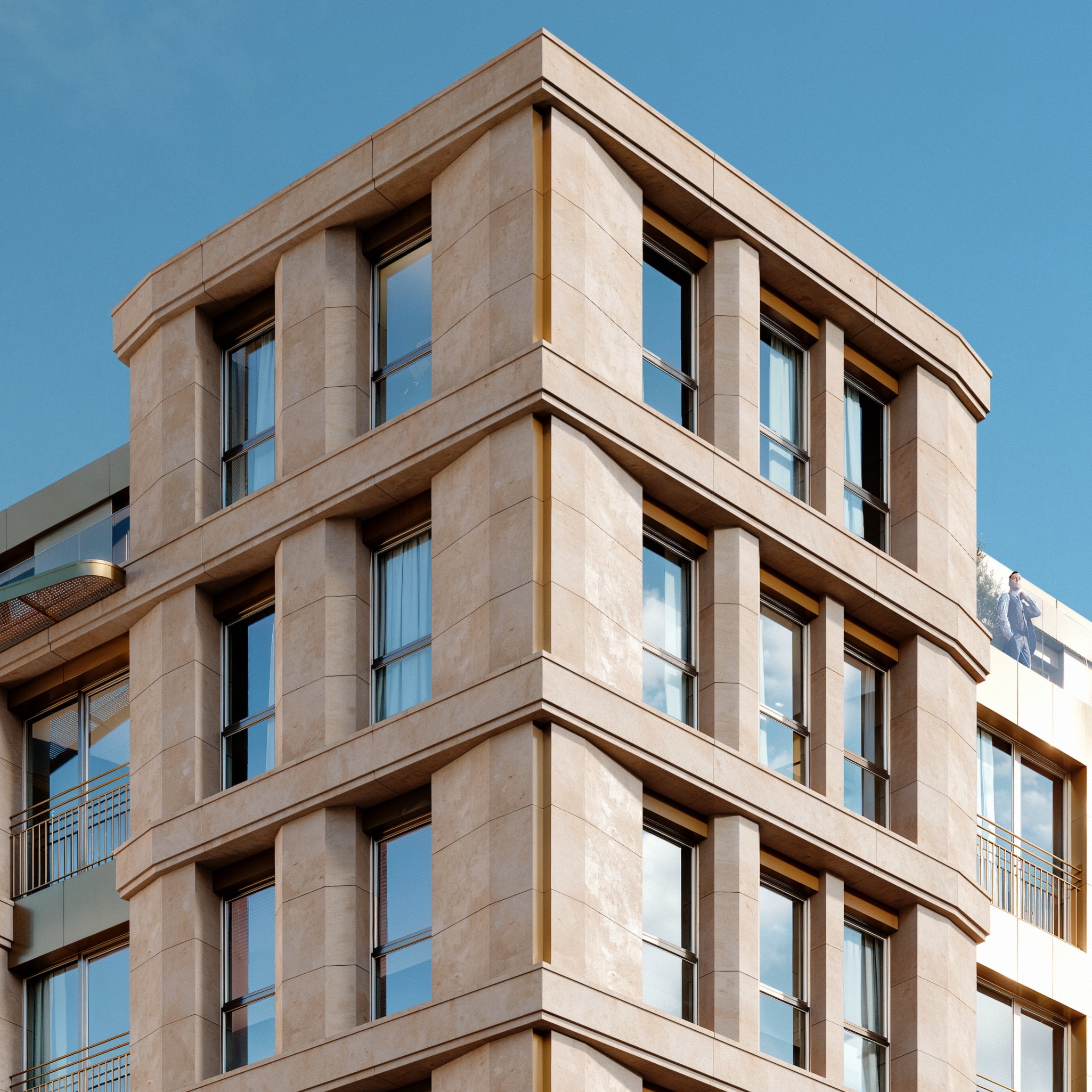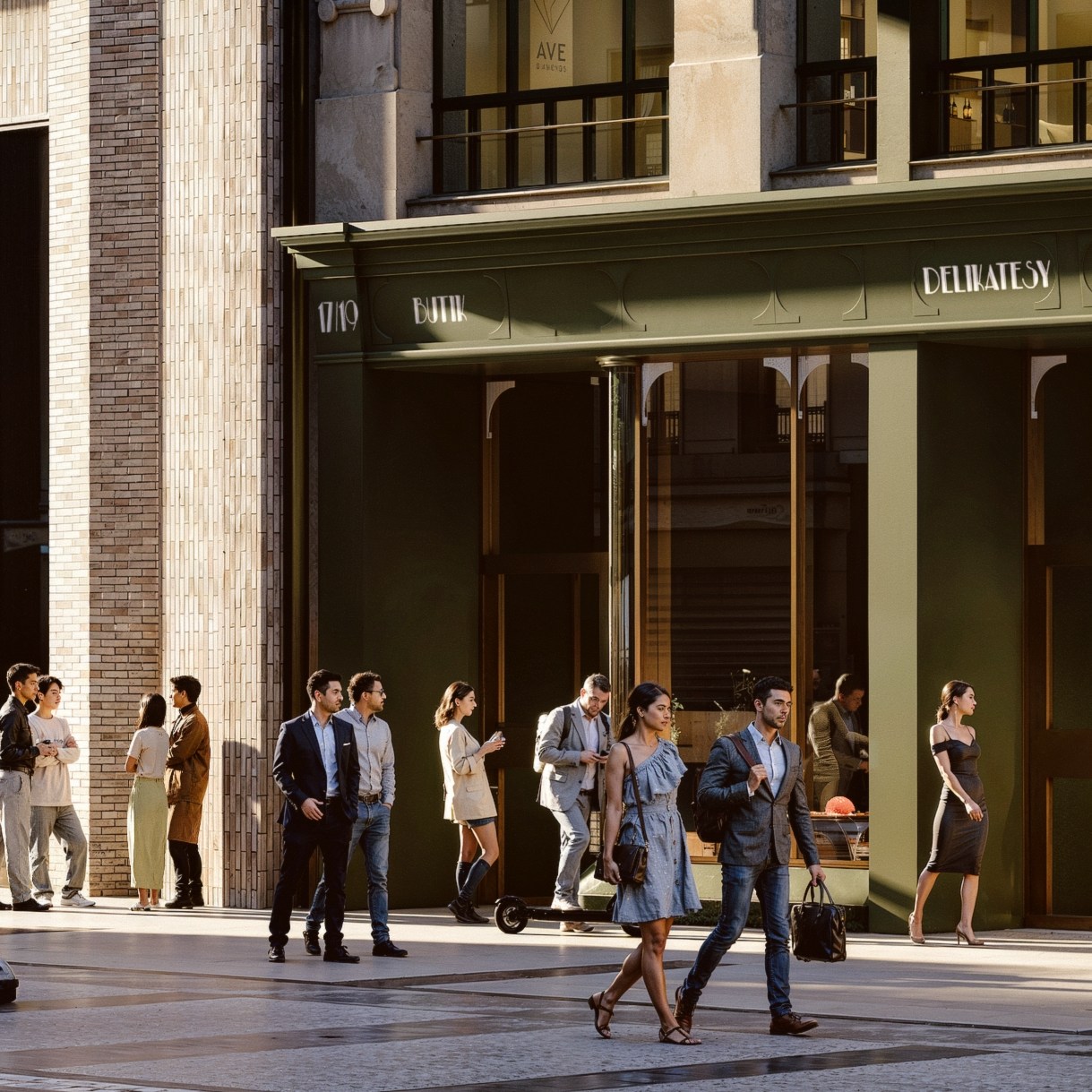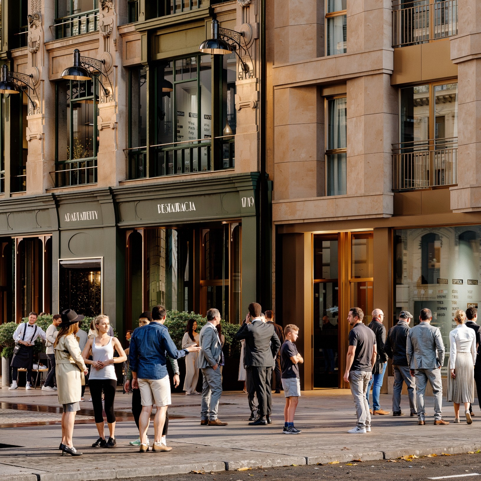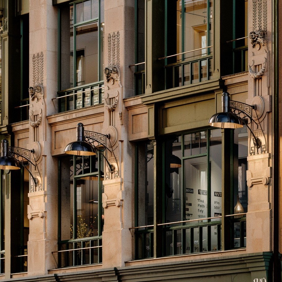 Renovation of the former Art Nouveau Modehaus and a new building filling the gap between existing buildings.